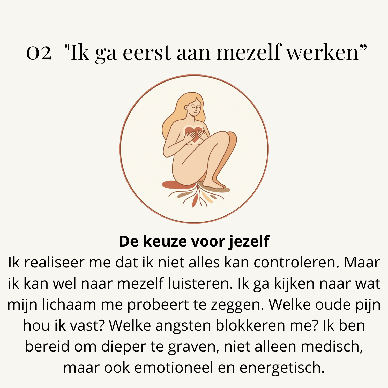 Dit gebeurt niet in één sessie. Dit is een reis. Meestal hebben vrouwen 3 tot 5 sessies nodig om echt iets te voelen verschuiven.